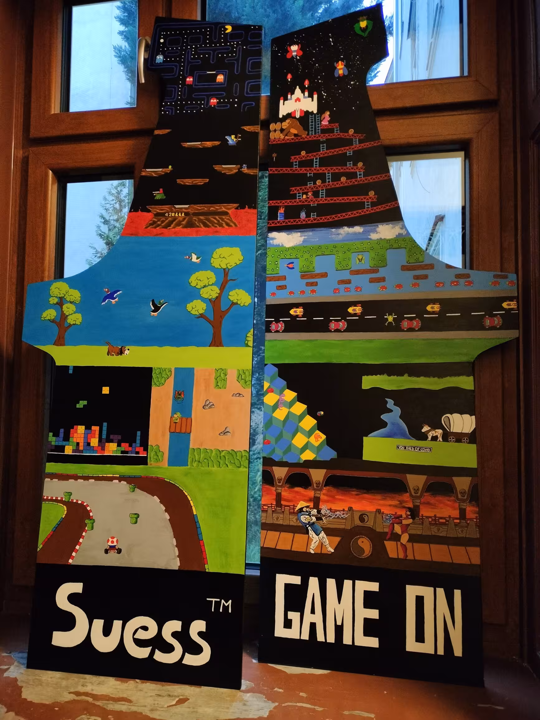 Since I like perfection and have very specific ideas of how things should be, it took me forever to paint everything. In the beginning, I decided on the games I wanted to be represented on the panels and the style I wanted to paint them in. Then I took a brush and did something completely different, and never looked at any of my sketches again.